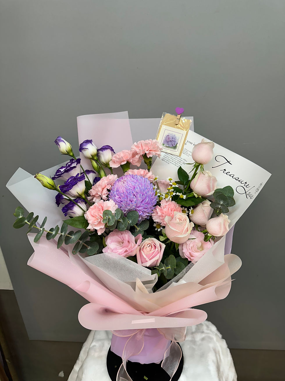 這款浪漫花束將愛意凝聚於每一朵花中,精緻的韓式包裝更添魅力。鮮豔的色彩與細膩的設計,完美傳遞您對摯愛的 深情與祝福,適合情人節或任何想表達愛意的時刻,讓每一份心意都如花般盛開。