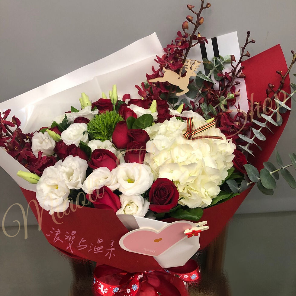 這款花束融合了熱情的紅玫瑰與柔美的白花,象徵著愛情的甜蜜與純真。每一朵花都承載著您對伴侶的深情厚意,完美傳遞誠摯的心聲,讓這個情人節成為難忘的浪漫時刻。用愛意滿滿的花束,感動她的心。